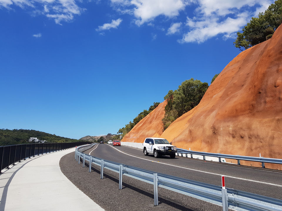 During Cyclone Marcia in February 2015, a 600m long section of the Scenic Highway at Statue Bay (south of Yeppoon) suffered significant landslide and rock falls and had to be closed. The associated slope section was up to 25m in height and adjacent to the coastline.